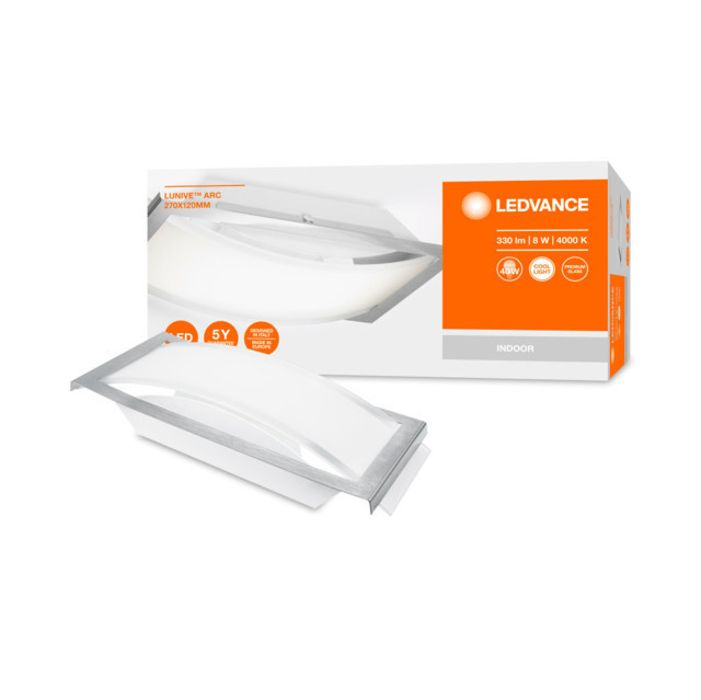 A LEDVANCE LEDVANCE LUNIVE Arc 270x120, beltéri, szürke fali / mennyezeti lámpa, 8W, 4000K, 400lm, IP20 egy világítási termék. 4000 K meleg fehér fényével.