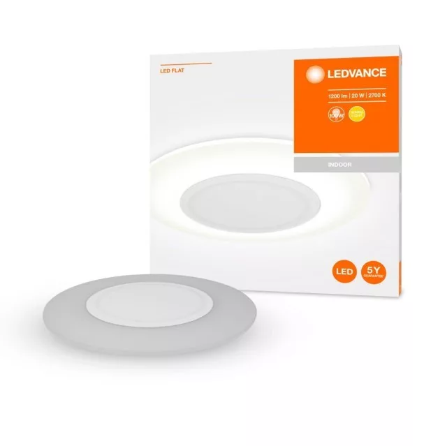 A LEDVANCE LEDVANCE LED Flat, beltéri, szürke fali / mennyezeti lámpa, 20W, 2700K, 1200lm, IP20 egy világítási termék. 2700 K meleg fehér fényével.