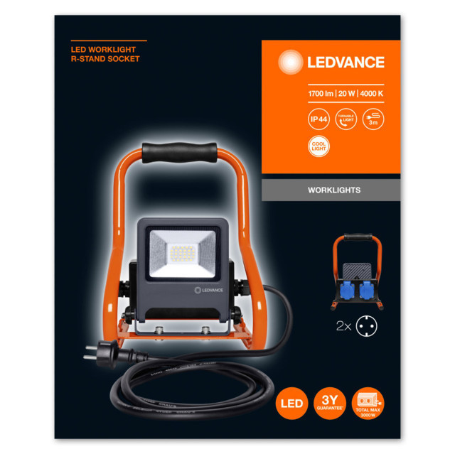 A(z) LEDVANCE WORKLIGHTS R-STAND SOCKET munkalámpa sötétszürke színben, 20 W fogyasztás mellett 1700 lm fényerőt biztosít, természetes fehér fénnyel, 227 mm hosszúsággal, IP44 védelemmel.