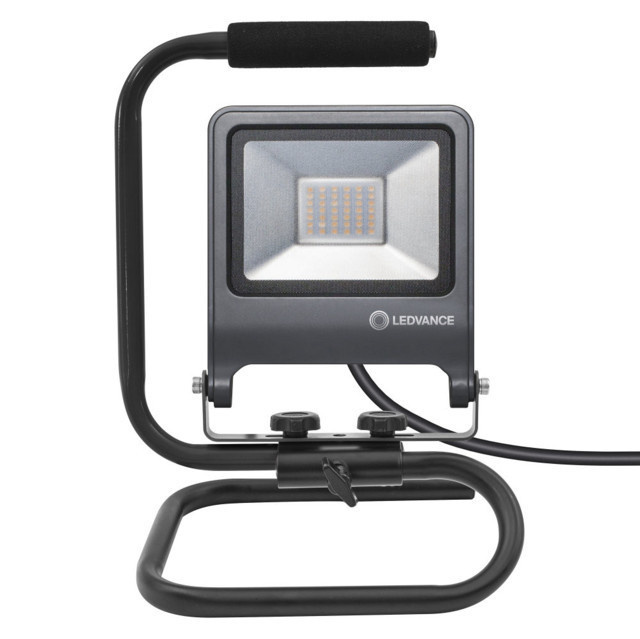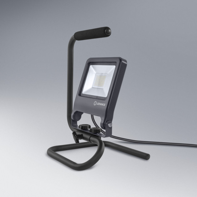 A LEDVANCE LEDVANCE WORKLIGHTS S-STAND, kültéri, sötétszürke hordozható LED munkalámpa reflektor, 30W, 4000K, 2700lm, IP65, hossz: 220mm egy világítási termék. 4000 K meleg fehér fényével.