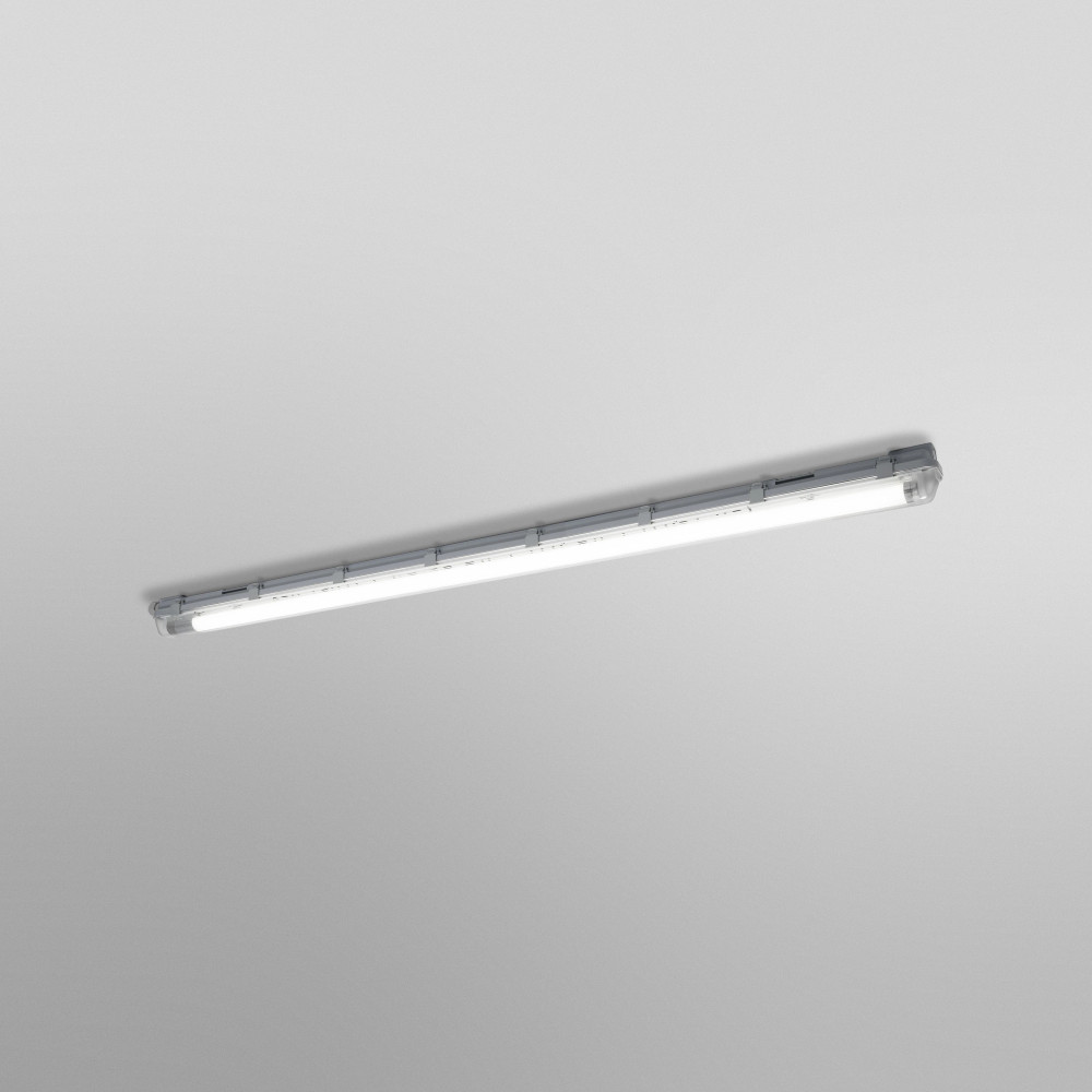 A(z) LEDVANCE SUBMARINE sorba köthető por- és páramentes mennyezeti/fali lámpatest szürke színben, 19 W fogyasztás mellett 1900 lm fényerőt biztosít, 1561 mm hosszúsággal, IP65 védelemmel, sorba köthetőkialakítással.
