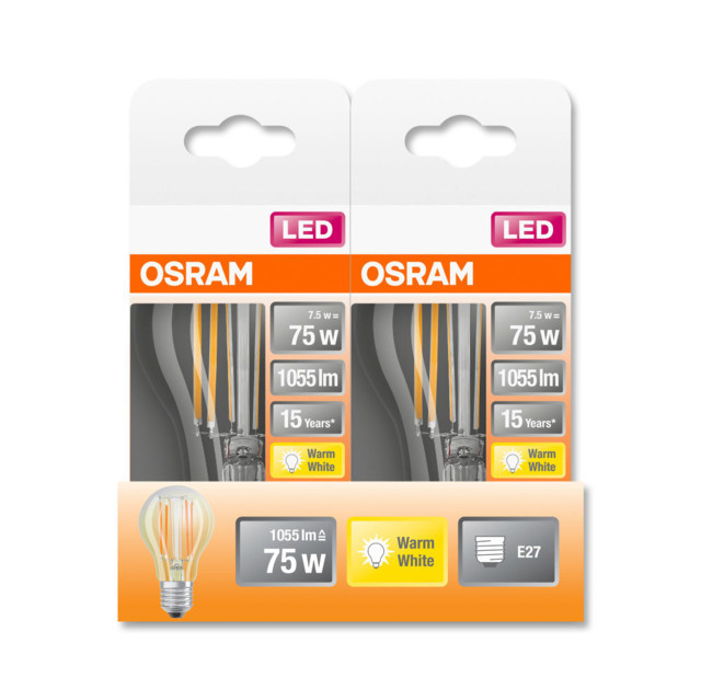 Az OSRAM Star LED körte átlátszó üveg búra átlátszó búrával kiváló led körte E27 foglalattal, amely akár 75 W teljesítményű hagyományos fényforrást is képes kiváltani. Mindössze 7,5 W fogyasztás mellett 1055 lm fényerőt biztosít, így energiatakarékos és környezetbarát világítási megoldás.