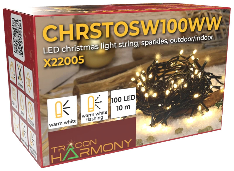 Tracon CHRSTHOSW200WW Karácsonyi sziporkázó fényfüzér, kültéri/beltéri (X25031) 230VAC, 2+5M, 200LED, 3,6W, 2600-2700K, IP44
