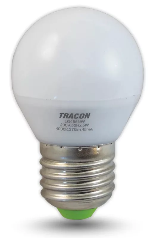 A(z) Tracon Electric GÖMB ALAKÚ LED FÉNYFORRÁS E27 foglalattal, 5W teljesítménnyel és 370 lm fényerővel megbízható, energiatakarékos megoldást nyújt. Akár 40W teljesítményű hagyományos fényforrást is képes kiváltani.