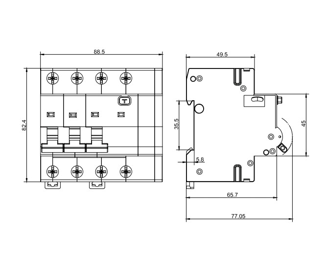 Tracon EVOBKM4C1003 Kombinált védőkapcsoló, 4P, 5modul, C karakterisztika C10A, 30 mA, 6kA, C