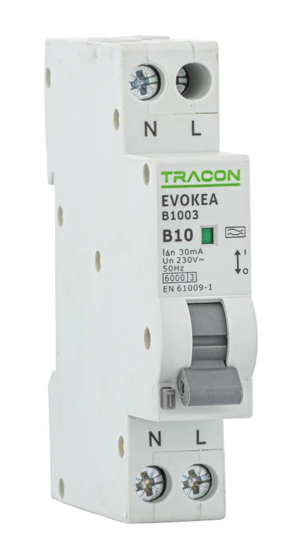 Tracon EVOKEAC603 Kombinált védőkapcsoló, elektronikus, 2P, 1 modul, C kar. C6, 30mA, 6kA, A