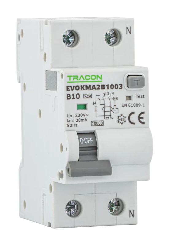 Tracon EVOKMA2C133 Kombinált védőkapcsoló, 2P, 2modul, C karakterisztika C13A, 300 mA, 10kA, A
