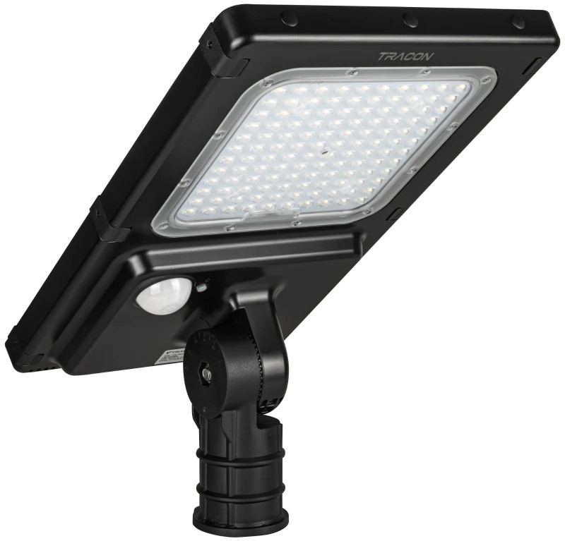 Tracon LSLSH40W Napelemes Hibrid LED utcai világítótest mozgásérzékelővel 40 W, 4000 K, 6600 lm, IP65, 9,6 V, 12 Ah