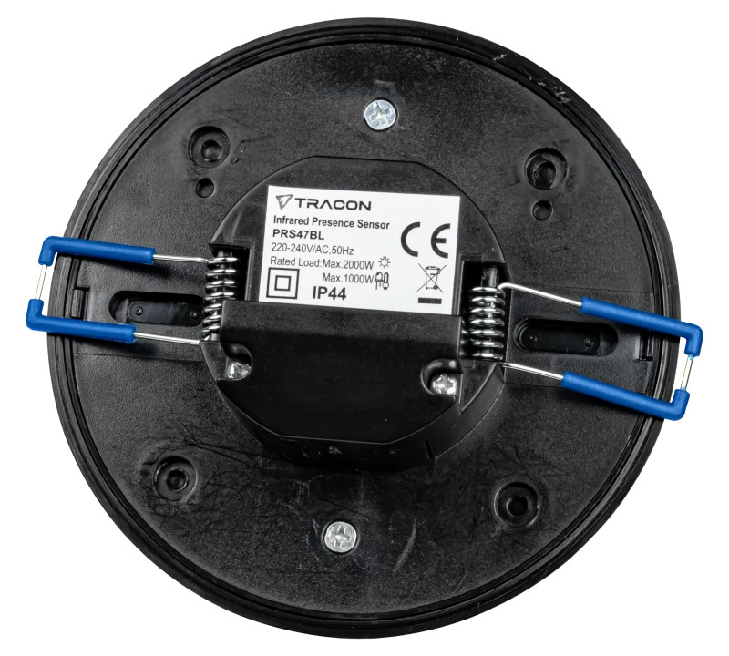 Tracon PRS47BL Jelenlétérzékelő, fekete 230V, 50Hz, 360°, 1000W, 1-20m, 10s-30min, 3-2000lux, IP44