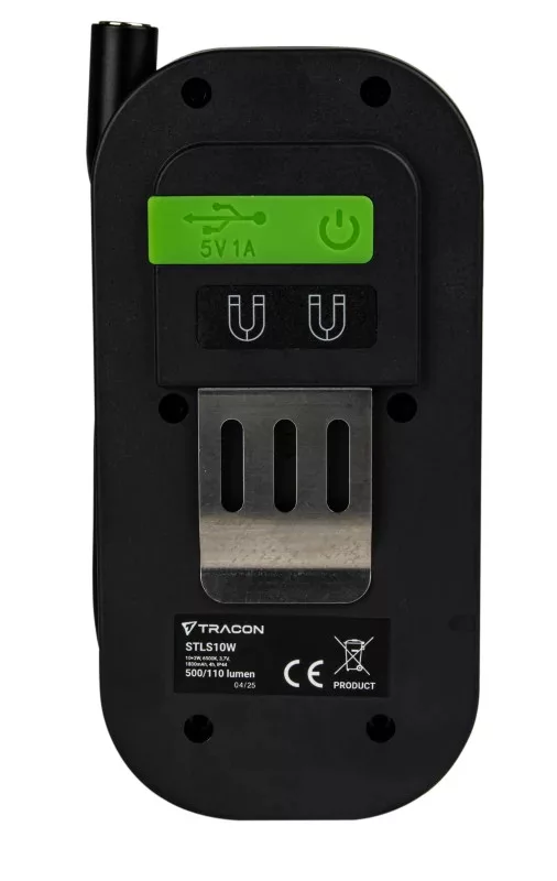 Tracon STLS10W Akkumulátoros LED kézi lámpa 10+2W, 6500K, 3,7V, 1800mAh, 500/110lm, 4h, IP44